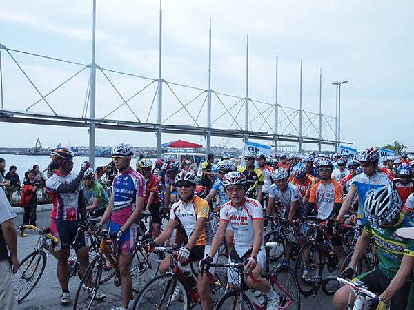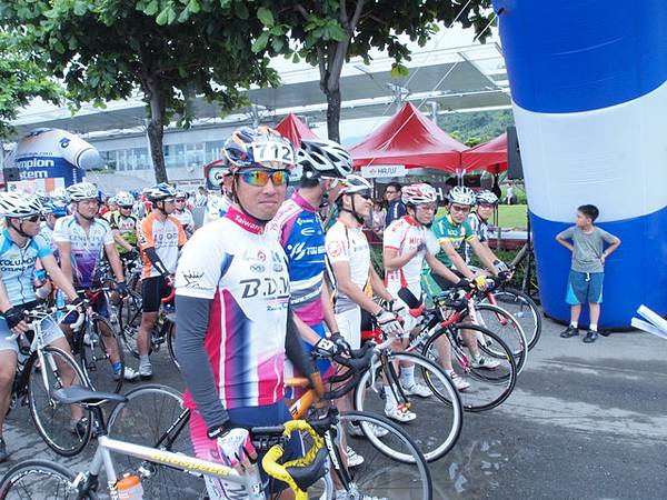 我們是第四梯次出發,隨著時間的推移,我們慢慢的往前進。等到第三梯次出發後,就換我們這個梯次了。而年度積分排名在前十名的人,會被大會叫到隊伍的最方去,算是保護優秀選手的禮遇。這是排位嗎?不過排在這壓力也不小啊,身旁的這群都不是好惹的,尤其實是那位白色輪框的世鑫,目前年度積分和我相同並列第一,所以今天的目標只要不要輸給他就好了。