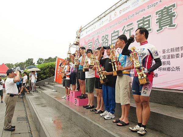 等待頒獎的時間超久,大約11點半就回到了烏石港。中間有一度雨停出了點太陽,不過等到頒獎時已經是12點半過後的事了,而頒獎時是在雨下最大的時候頒獎。先頒的獎項是花東二日賽的團體獎,車隊首次領到團體獎實屬難得。