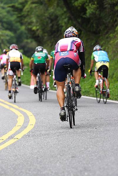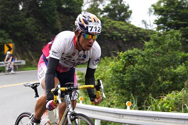 到了一公里的牌子時,看到了PJ,但是我已經被拉開了GAP,前面和我距離慢慢的拉大...,我絕對不是因為想被拍張獨照而落後的。這張拍的超讚的啦!很難得在上坡還有這麼帥氣的照片,而不是一臉快死掉的樣子。