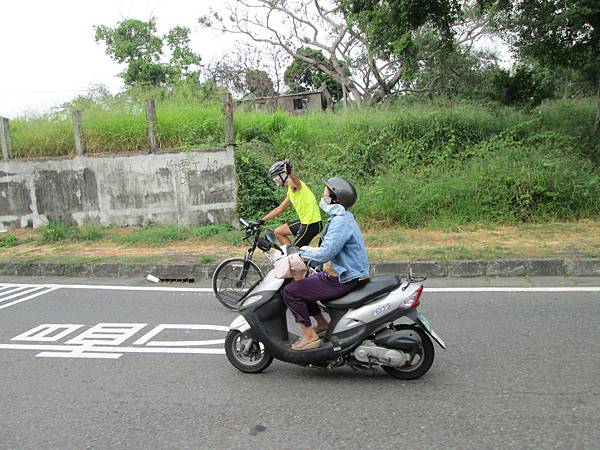 這位是在來車場路上遇到的環島車友,從台北出發走順時鐘方向,雖然我現在速度不快,但也是輕裝公路車。他以重裝登山車可以一直尾隨在我身後避風,想必也是有練過吧。不過我轉往楠梓,他續走台1往台南就分開了。