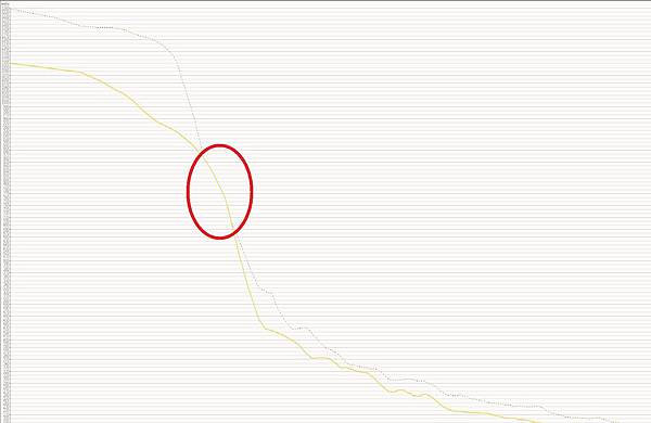 不過說沒進步還是有一點進步,今天倒是刷新了六百到八百瓦的時間區間,不過這個區段在公路賽的用途比較有限,在場地賽的用途可能還大一點。不過還是算一個小小的進步,記錄起來吧。今天突破了界限,莫非是用了追憶旅人的關係...?(神魔之塔梗)