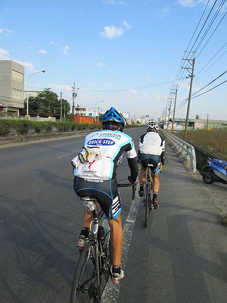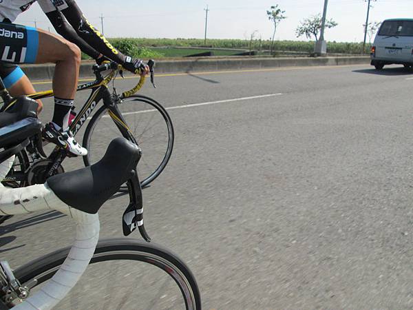 他們之所以沒有先走的原因是因為我是領航員XD,平時私約我應該會約八點才出發的,但是HANK趕著要在1400前回到高雄,就只好把行程時間往前,然後把里程縮短一點了,先看十點半時騎到哪時再決定怎麼做吧。DEADLINE是由HANK所訂的,那就由HANK領騎吧!然後頂著大逆風,HANK就一路36的速度前進...,還好我是躲在最後的,這個強度還可以承受。