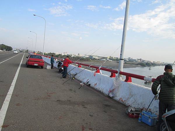 二仁溪橋是台南高雄的交界處,也是河海匯流處,吸引了許多釣客在這揮桿垂釣,不過今天人特別多呀。