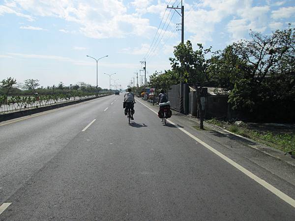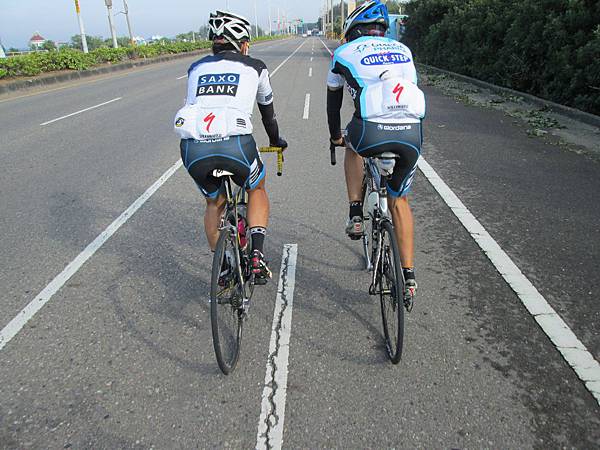 遇上兩位環島客,接近一看後才發現是外國人,原本要說加油的,趕緊換成GO!GO!GO!ALE!ALE!ALE!他們有跟在我們的後方,但是沒多久就掉了,回程大順風我們三十幾在跑是很輕鬆,但是對於載著行李的登山車還是很累的。