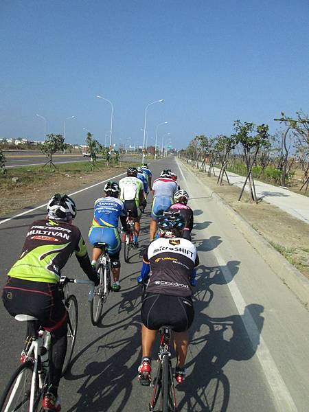 一路平穩順風的往台南前進,冬天平時是吹北風,天氣特別好的時候會吹南風,現在吹的就是南風,讓我們很快速的前進著。經過台南市區,往七股前進,但是到七股時並沒有回轉,而是到篤加國小時才回轉。