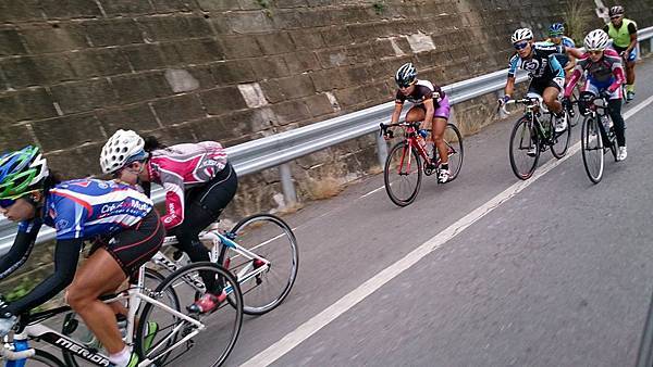 爬嶺口時速度拉的不慢,有些人開始落後有gap出現,因連休四天爬這個速度讓我感到很吃力之際,看到前方有人左擁右抱。啊~不是啦是左右開弓的推人上坡!推一個就算了,一口氣推兩個,只能說太強大了。