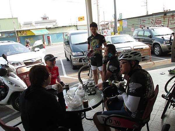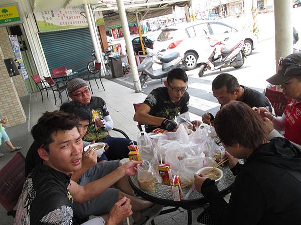 接著回到八八萊爾富的起點,而阿揮買了林家肉粿來吃,為什麼不直接去吃?因為怕假日人潮多呀,所以就開車的阿揮去買,大家就騎回起點來等吃的就好了。20150421