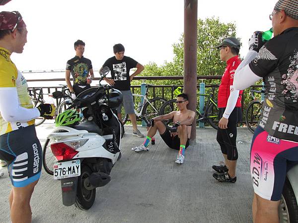 到大鵬灣後就開始小張的測驗,那其它人呢?我們是陪公子練車的,所以就自行遊晃...。男哥還認真的騎了一圈,第二圈時才發現,他又沒插賭幹嘛騎的那麼認真,就漸漸慢下來了。而我是補之前在忙都沒騎到車,所以也就努力騎了。首圈22分半,二圈20分半,末圈21分左右。感覺還有很多地方可以加強,只能再慢慢練回來了。到第三圈快上橋時才追到小張。
