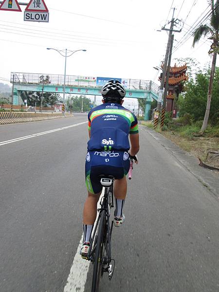 為了怕拖到阿修的行程,今天就很認份的跟好就好。左上的牌子就是我目前的寫照。哦~這也是昇陽CCT車隊新車衣首航,PI的車衣褲大約只有我剛騎車時有穿過,後來就都沒有穿了。十年後再穿起,有種久遇老友的感覺,有些變,又有些熟悉。墊子不錯有改進很多,不過車褲的鬆緊帶依然,衣服的也是相同,其它的就慢慢再體會看看囉。