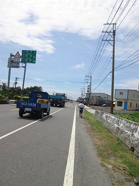 過了楓港後狀況有好一點點,不過也沒有好到哪去。不過在快到水底寮時遇到這位大哥,我原本以為我大中午的在騎車就夠瘋了,沒想到有人比我還強,大中午的在跑步...,看到這景像我都想認輸了(在比什麼呀)。路上遇上不少看似是環島的人,有三五成行的,也有二人一組的。