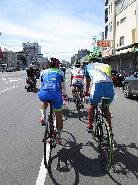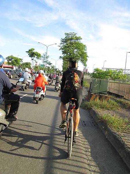 出發,其實我根本不知道要騎哪。反正跟著就對了,後來才知道是騎月世界,也就是田寮段。不過呢,我在到達阿蓮市區時就爆胎,和熊說你們先走,我自己處理。就留下我自己換胎。事後看了記錄花了五分鐘處理...我以為我三分鐘內就搞定了咧。