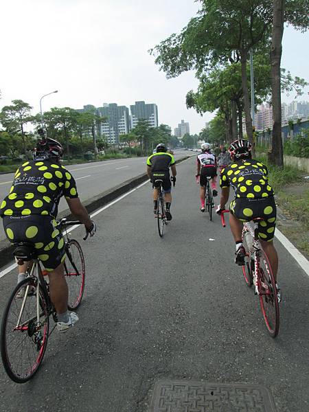原本以為比完了老虎盃就不用練繞圈了,但是阿修、小駱、家榮以及柴山的良彬,想讓大家更能夠感受到繞圈的魅力和技巧,所以還是繼續來這練習了。這台是家榮的新車小桃紅,T-MOBILE也是我剛騎車時很強的名隊。Jan Ullrich比賽中的身影還是令人難忘的。