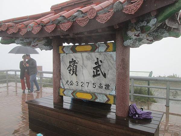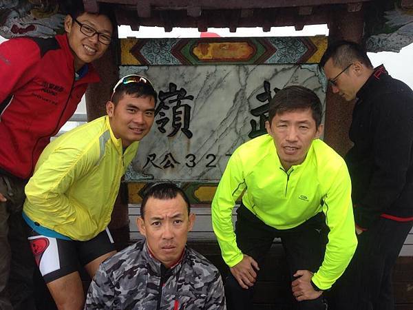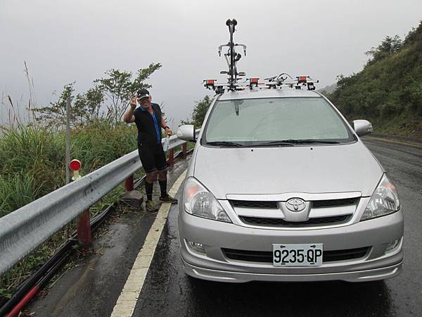 坐在鳶峰打卡,喝著熱熱的薑母茶,等待隊車上來後裝車,ANDY早就在這不知等多久了。隊車上來後,看到台南的車友,但是他沒爬過武嶺,堅持要在雨中爬完,反正只剩十公里嘛...。好吧,他執意這麼做,大家就先往下去找另一位車友。但是遇到他時,車子無空間迴轉,等到可以迴轉並且找到他時,往前開可以供架車的空地是...鳶峰。也就是說我們其實不用多跑這趟的...。不過也可以知道霧有多大,大到幾公尺外的景像都無法看到。再往上找人,看到台南車友正在打電話要叫支援時,我們剛好就到達了。他全身凍僵了,連手指都快動不了,就說不用拚這一時半刻,山都在啊。