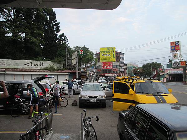 其實還有二人,但是臨時都因為有其它事就取消了。在台南接到車友後,在東山休息站補給了一下,我吃了第一次的早餐,上路後就一路睡到埔里。在埔里又吃了次早餐,並且換裝整備準備上。看來武嶺真的是熱門路線,同時間還有其它車隊也準備上了。