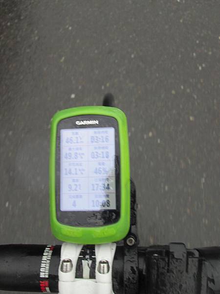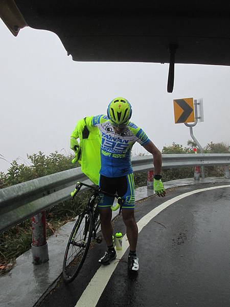 因為天氣冷又有下小雨的狀況,所以速度不能掉太多,冷掉會失溫的。今天水喝的少,到是很意外的事,不過在過了翠峰後因為阿德補給車要等後方的人,所以也就還在後方,這時是嘉義佳德單車俱樂部的大哥給了瓶水,解決了我燃眉之急啊。感謝他!