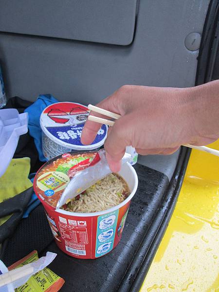 接著行車到小風口的停車場,到服務中心裝熱水煮點心囉!爬完山什麼都好吃啊。服務中心好多人,大部份都是山友。