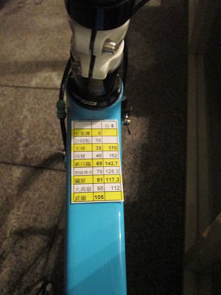 感謝隊內印製的里程表,超級有用。最少讓我這個偽花蓮人知道里程還有多遠。沒坡度也無所謂,反正遇到陡坡還是要爬的。不過實際上使用時,台8的里程好像有點怪怪的,可能是公路局又調整過里程牌吧。