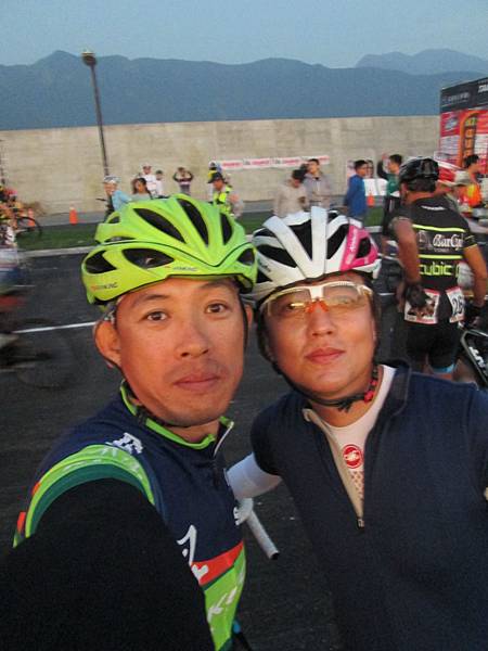 在會場不期而遇到了施醫師,先抓來拍個照吧,互道祝福加油後就繼續暖身去了。後來施醫師發生了摔車事故,有些小傷,而未能完賽。