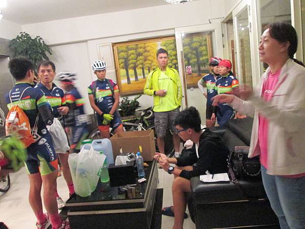 五點隊內的行前注意事項提醒,和重點事項的說明。因為這次主辦單位有發背包,而且會先行運送上山,所以車隊支援車就不做這項業務,大家各自將禦寒衣物拿到大會收衣處。