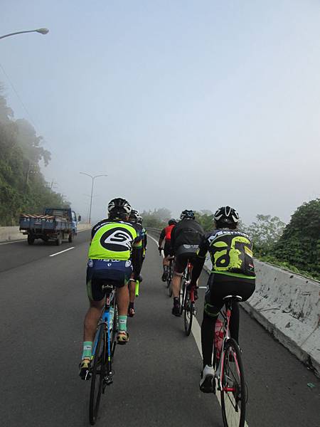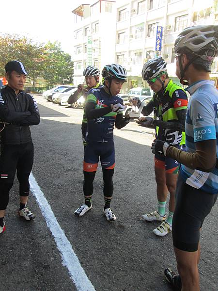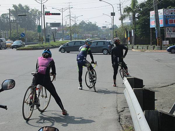 集合點有些遠啊,二十公里,要抓大約五十五分鐘比較保險。抓五十分鐘結果買早餐到達後只有一分鐘的時間吃早餐,還好阿修依慣例遲到,加上一出發就有人爆胎,所以拖到了七點三分才出發。