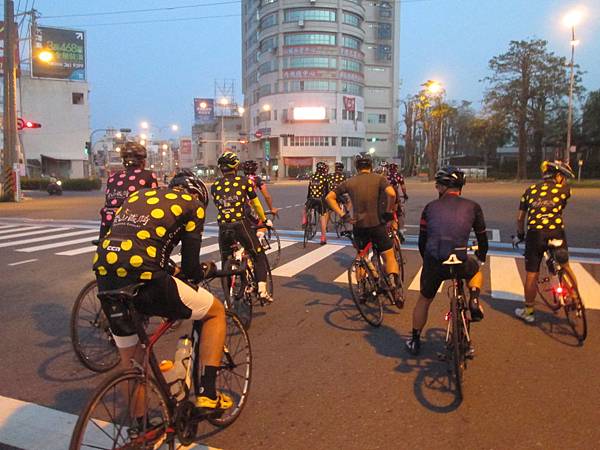 原本是阿修團的新威大橋,後來併柴鐵團的七股,其實哪都好,只要有人把我叫醒,我就可以出現在集合點。不過五點半在世運主場館,這不就要四點半就起床!好吧~來吧,反正只要有人叫我就好。好在我的車友都很耐斯,阿修和阿福先後打電話來叫我起床,之後先會和到阿福及家榮,就一路快速的往集合點前去,只能說真不愧是家榮呀,即使我晚到了,他還是在時限前把我們帶到世運主場館的集合點了。