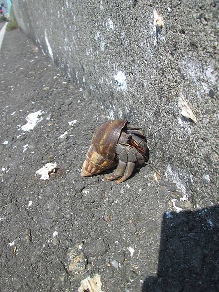 北上時一路逆風,還好小毅夠大隻,他加速時就躲他身後,可以獲得超大的無風帶。兩人都不若之前了啊!有意80者,請先抽取號碼牌。在東港的橋上看到了像是螃蟹的東西,還特意回過頭去看看,沒想到是一隻寄居蟹!這隻寄居蟹還不小隻哩。怕他被壓扁,所以就撿起來拿到橋下的草地去放生。後來聊天的話題就是一系列的抱怨文,寄居蟹表示:超幹~要過橋走了一天一夜到一半時被人類丟回原點。