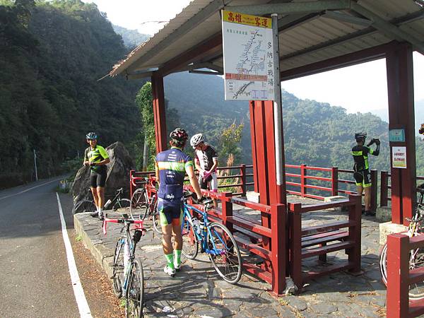除了剛開始的橋,及中間的雜貨店,還有老鷹橋,多納涼庭其它的都不太記得。記不得中間的路,也記不得中間的城鎮。爬的途中還好有鍾董一路相伴,才不至於自己一個人騎。他明天還要比十字關,今天只是出來動一動的。而前面的阿修小駱家瑋早就不知殺到哪去了,就連都說沒什麼騎車的阿福和小杉也早就不見人影。爬坡還是我最大的死穴啊,不過這個不急,反正先上去的人還不是要等我。