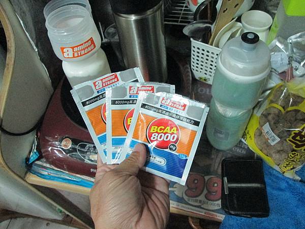 算是一夜好眠,原本因為四點起床,四點半出發的行程,因為昨天還有臨時工作上門的關係,所以就延後半個小時出發了。所以出門的時間和上星期是差不多的五點才出門的。出發前因為是個超長的行程,補給就不可少囉,諾壯的BCAA一直都是我練習的好伙伴,但是一次加三包會不會太多了?