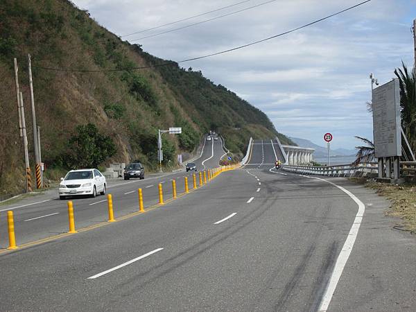 途中某個彎看到了有高架路橋,特別停下來拍照。這個是南迴的草埔到安朔段的拉直隧道高架段,雖然對於行車來說變快了,不過現在爬的台9線南迴段,到時就會和北宜公路一樣危險了。到時就變成了專屬的山道試車場...。