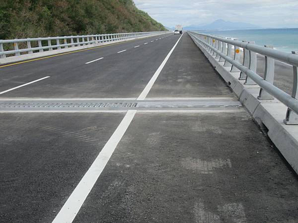 新的路和舊的路是分別單向通行的。而在新路橋的伸縮縫旁有為了避免國賠(誤)自行車騎士所鋪設的鐵蓋。讓人可以很放心的通過。