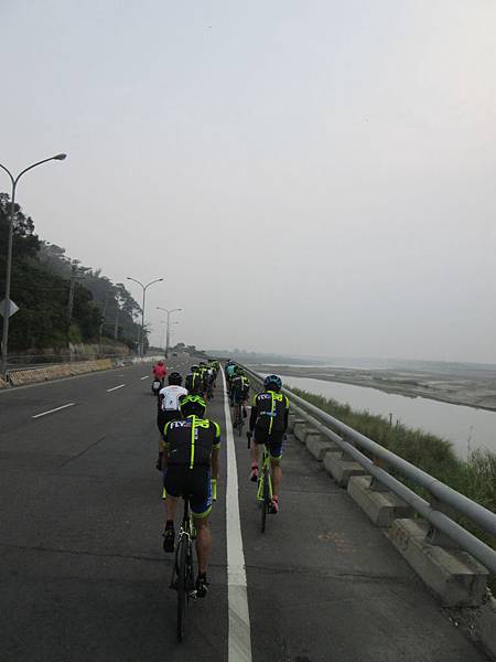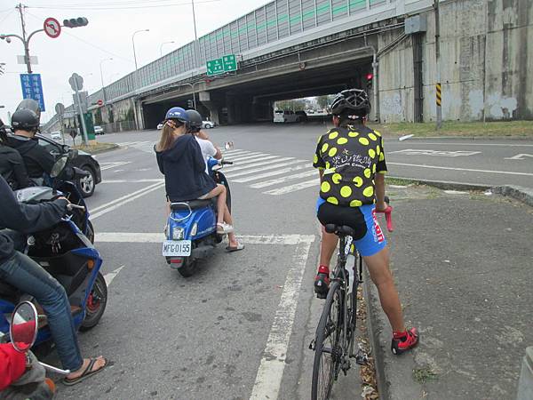 追擊戰開始!先是跟上了台速度差不多的機車,原本跟的好好的,沒想到阿伯回個油,我速度就被打亂就跟不上了。爬完嶺口下滑時,之前是Ridley 的阿賢,現在變成TIME賢從後方追過來喊了我一聲,而我被嚇了一大跳XD(虧心事做太多了)。他直呼我跑太快了,其實並沒有,都是機車的阿伯騎太快,所以我才會一直加速一直加速的,原本約他一起走,但是阿賢還有事要早點回家去,就在嶺口橋道別,而我在這也追到等紅燈的飛行71R的隊伍。