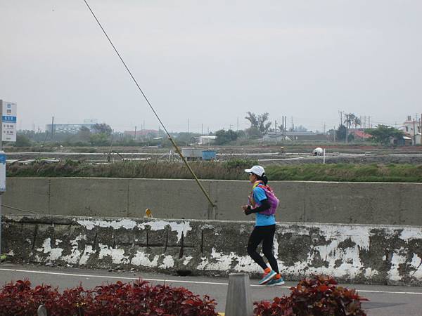這位是在路上遇到的女跑者,我們是沿著台17騎,而她是沿著台17跑,我們遇到她的時候是在五公里外的北門國小,不知道她會跑去哪去呢?