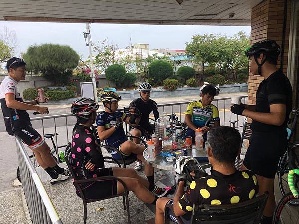 阿修正拿著碼錶在檢討速度不夠快一事XD。在小七補給,大家就開始的吃吃喝喝。不過我在這並沒有做足夠的補給,一方面想說還可以,二來身上還有帶GEL備用,但是我輕忽了我的體能在我沒騎車的這時間消退的很快。