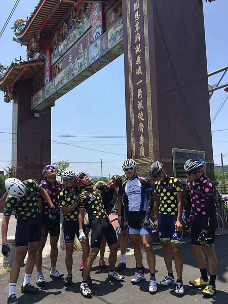 最後一段路從台南回右昌,隊伍也沒慢下來。一直跑到彌陀的阿彌陀佛像後才沒有一直出現四字頭的數字在碼錶上。不過阿湯哥還是一直加速直奔回家。在經過展嘉路(高23)的十字路口時,有位媽媽載著小朋友,媽媽代小朋友問了個問題為 什 麼 你 們 都 不 停 紅 綠 燈。這下子我們讓地方的媽媽都不知道要怎麼教小朋友了。只能對著小朋友說,這群叔叔伯伯都不是好人,千萬別學習哦XD。在蚵仔寮的牌樓前照了完成的大合照,不過阿湯哥跑太快了所以沒入鏡。