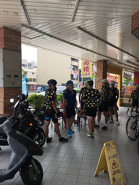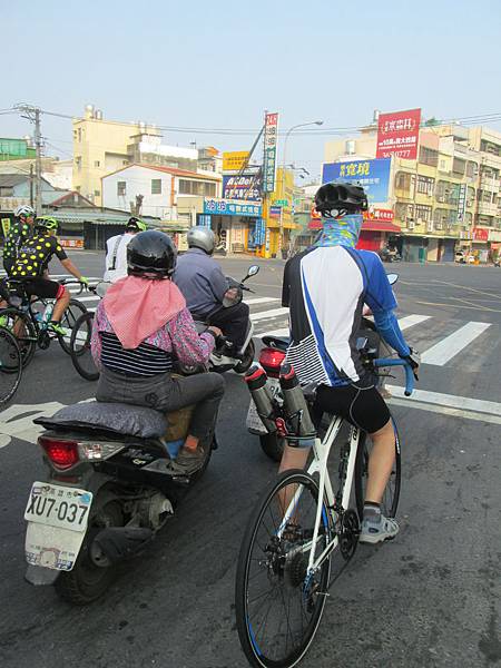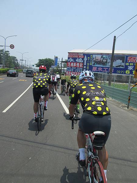 在七股前小羽開始落隊,原本想帶她回到隊伍,但是沒想到連我也落隊了。原本要追回隊伍之中,但是加速加到時間到後,還是追不上...。目前看來是個自身難保的狀況,根本就沒有餘力可以幫忙別人。落後在後的小羽老師,有柴鐵的強力支援人員樹楷協助帶回,連帶的我也搭上順風車。不過後來還是超過我的極限就又變成自己獨騎了。原本想說要不要折返了,但是想說自己騎好像並不會比較快回到家,就很認份的先騎到南鯤鯓小七再說。