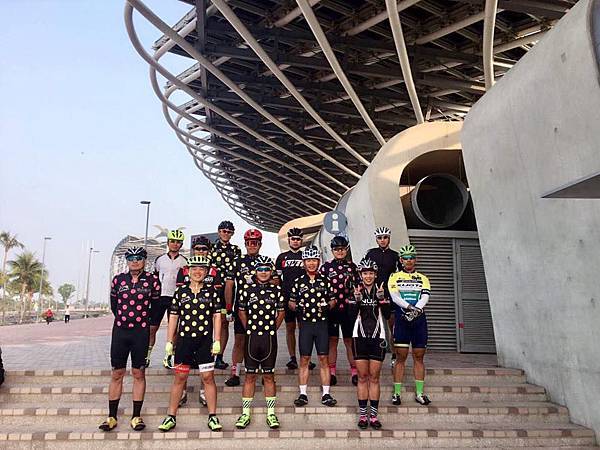 在世運主場館拍完了樣板照後就出發了,今天人也不少哩。今天參加的人有小駱、茂雍、小羽、宏強、育瑋、淙欽、展健、樹楷、力仁、易正、王麒麒及Tiger Chen。其實很多柴山鐵騎的人我都不認識,名單只是抄別人的FB上出席人員。
