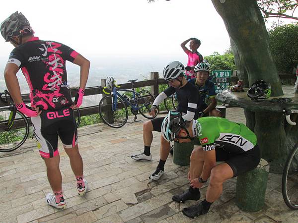 其實才上果園,先是正修的小朋友(許學鴻)就追過我了,然後是阿修及其它人等,還沒到三叉口我先跑的優勢就一點都不剩了。果園到香菇亭花了36分...。我有很努力在騎,但是總是快不了,天氣很悶,溼度很高,爬的我襪子都是溼的,連卡鞋也溼了。明明是好天氣,但是鞋是溼的...。