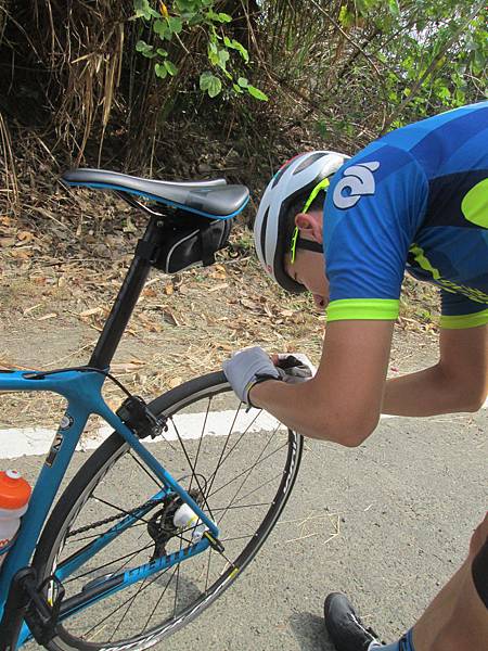 他們都不知道休息多久了,不知是誰還買了沙士讓我補給,實在是太感謝了。然後就是究責大會的開始,阿修秀出他幫秉程換胎的照片,我們則是吐他槽說,不要以為時間超過,把輪子拿下來就可以當成理由XD。