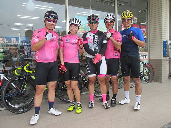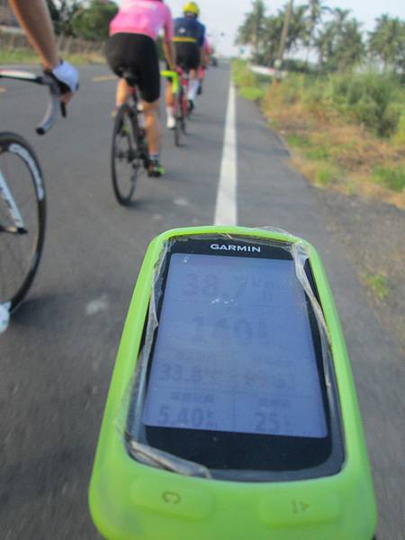 不知為何,在沒有特別的說明下,三位老師都剛好的穿上環義的粉紅衫,而我是穿北大武車衣,而姜Sir則是車上配著粉紅色的把帶。同行的五個人都有著粉紅原素。原本想說下星期197,雖然阿修今天排的是七股緩和騎,但是阿修的緩和騎大約都35起跳的。所以我才來參加蕭老師的Scott同好團,想說可以輕鬆一下,沒想到碼錶一直維持在38左右的巡弋速度是怎麼回事...。等等~!這和說好的不太一樣啊。