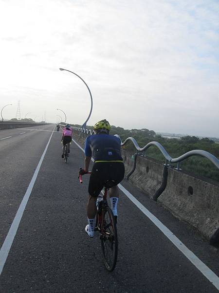 結果在燕巢交流道時,又不期而遇的遇到也是要騎去集合點的蕭老師、周老師和姜Sir。這樣就不用擔心會遇不到人了,不過他們都表示,遇到我之後就是辛苦的開始。不要再相信沒有事實的傳言了!!!!!在里嶺大橋的高雄側等屏東的李老師到來,沒幾分鐘她也來到就出發了。