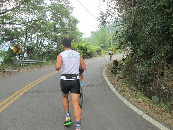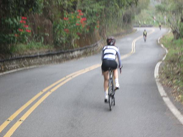 至於這個咩,原本在出發約半公里左右就追到她,還想虧一下說要不要當一下護花使者,但是在二公里前就被反追回。重點是,她!一!點!都!不!慢!好啦~是我騎的太慢了,就看她一直在視距範圍之內,但是一直無法拉近距離。在身旁的璋哥對看了一眼苦笑了下...。直到七公里半左右的一個小下坡處,才利用體重優勢超越了她。