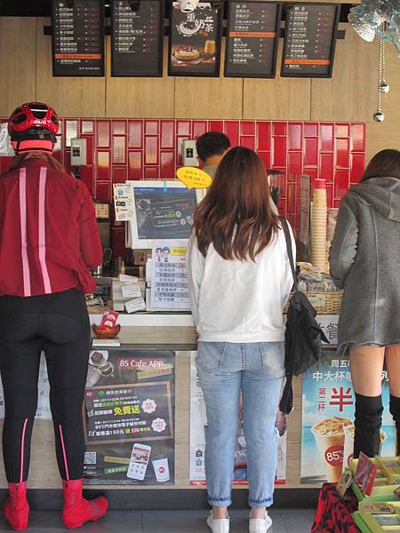 下滑前和阿修交換輪組測一下無內胎的騎乘感,果然很驚艷,變的很平順,對於震動的回饋變的不會那麼的抖。到了燕巢的85度C看咩喝咖啡XD。