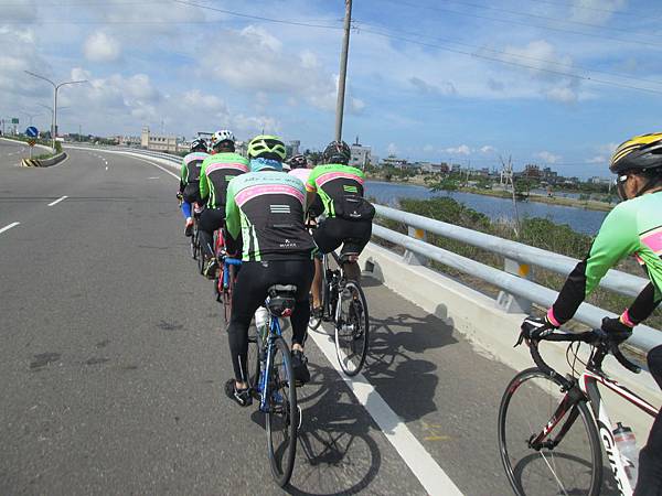 要去蚵寮派出所裝水時,員警看到我拿水壼時告訴我說:飲水機壞了哦,只有瓶裝水。瓶裝水花的其實都是他們自己的經費,還是算了。再去到下一個點吧。甫出派出所就有車隊可以跟車~還是髮香團哩。原來他們是台南的車隊,騎去布袋,目前要回程了。看著他們整齊的隊伍和友善的眼神,我完全可以感受到那份誠意和體育精神(喂~)。其實沒跟很久,因為我完全沒水,所以到消防局北門分隊時就前去裝水,只是他們飲水機是在二樓,著卡鞋上去要小心些。第一次來消防隊裝水哩。順便喀了包GEL補給後出發。