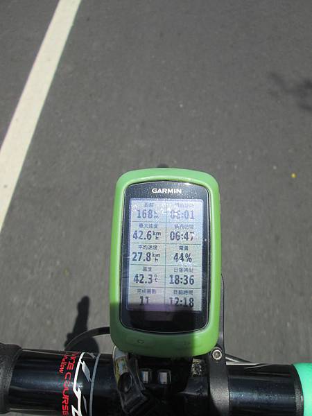 各位觀眾,42.3度。這是有拍的最高溫度了。不過氣象局的溫度測量有一定的規範,所以和我們的感受有差很多(註一)。1222到家囉~。除了在台南休了二十分鐘不算的話,就大約和預定的12點到家只有些微的誤差。六個小時騎完均速只有27.8Kph,只能再加油囉...。20180530