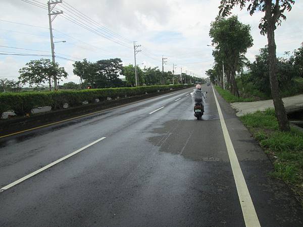 雨騎很久沒有了,騎車遇到下雨,只有兩種選擇,騎慢一點看雨會不會停。另一個是騎快一點回家。自己騎車遇到下雨沒有躲雨的這種選項,所以選擇快快騎回到家。也許是因為下雨的關係,感覺更不熱了,速度也提升上來了,到湖內大路口只花了26分。理論上若是剩下的路程和來程一樣快,時間就可以壓在六十分內了。雨一直下的很大,但是一過大路口後只剩下地面溼了一大片,雨也沒下了。