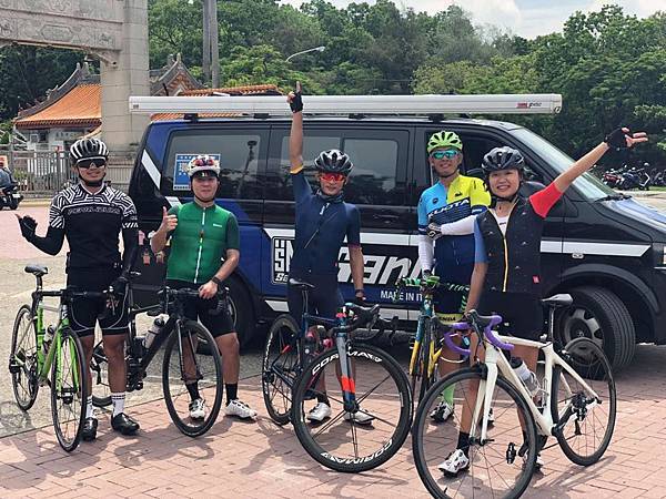 這是這幾天最好的天氣了啦,前幾天不是下雨就是地面溼,0600到達澄清湖的門口,其實還一度找不到人在哪,不過看到幾位身穿SANTINI車衣的車友聚在一起,又看到森浦和小花就知道沒走錯了。不過因為等人等到0625才出發,我一直認為今天是輕鬆騎的...,畢竟隊伍中還有兩位妹紙,這應該是和善的髮香團。