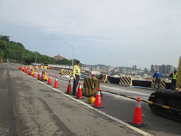 到了破洞的地方,其實範圍還不算小,現場很多機具在施工趕工著。