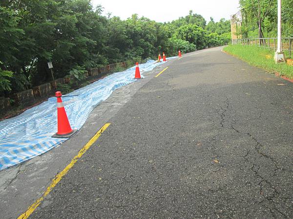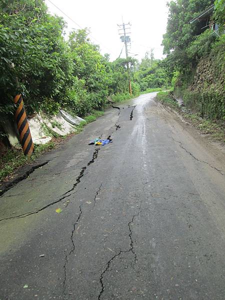 其實在柴山國家公園籌備處往中山大學那也坍了一塊,也是路坍了一塊下去。到了後山就還好了,在山海宮那有一小塊陷下,而在往上方水塔哨的路上也陷落了一大塊,讓路面只剩不到一半的地方可走,而且還有泥濘,再上去後還有二處橫越路面的小河...。騎了二趟後就不上去了,就在這迴轉了。