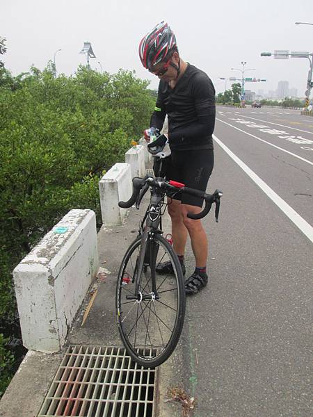 其實到台南就感到有點快跟不上,只是很勉強的跟著不要放掉,才出台南市不到兩公里,淩大大就爆胎了,我很榮幸的可以留下來幫他換胎XD,只是隊伍整個停下來等待,而不是如我所想的他們先走。隊伍在等待著,也就不擔誤大家時間,用最快速換完出發,只是隊伍速度不慢,不到兩公里我們就被抛棄了,不過阿修以強度過高,不符合他的訓練區間為理由帶著我和老榮民前進。