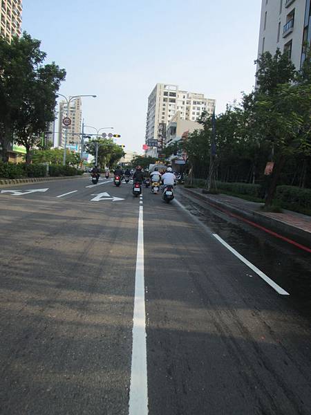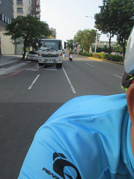 心想為什麼要在上班的間峰時間灑水...,害我一路和機車衝刺。在車陣中討生活就很不容易了,還要和汽車一起搶位子,害我很想調頭回家去了,等下看到灑水車我一定要把駕駛拖下來打。然後我就看到灑水車了...,然後我就默默的經過了。今天我趕著練習,算你運氣好XD。
